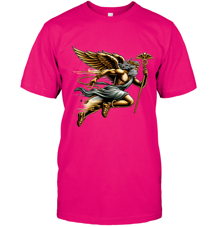 Speed, agility, and divine power—embrace the legendary swiftness of the gods with Wings of Hermes! This dynamic design captures Hermes, the Greek god of travel, speed, and communication, soaring across the heavens with his winged sandals and caduceus in hand. A symbol of intelligence, movement, and divine connection, this T-shirt is perfect for those who live fast, think sharp, and never stay in one place for too long.